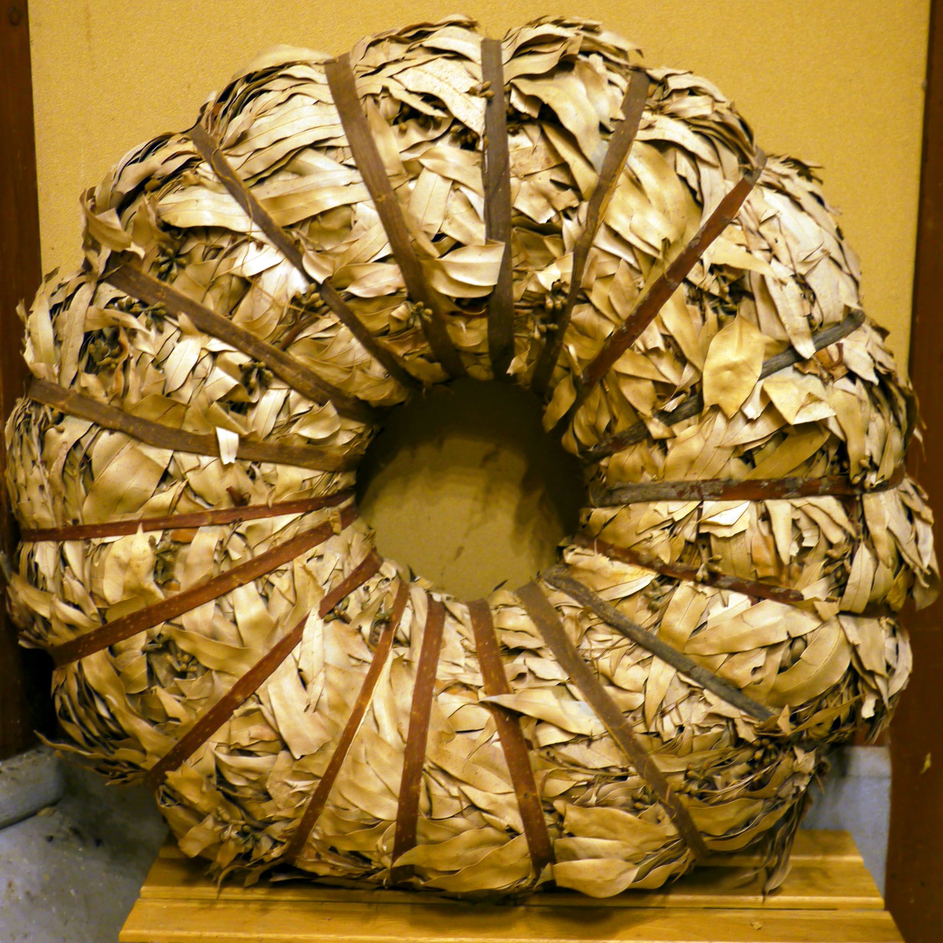 しかし、何年か室内に飾ったあと、屋外のむしろ日に当たるところなどに置いておくと、どんどん白色化していって、リースが仙人のようになっていくのもまた見モノでもあります。